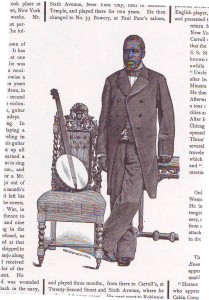 “While they were playing in London, Weston – who is a real negro and not a burned cork specimen – seemed to arouse a great deal of interest on the part of ladies in the best society, and they used to write sweet notes to him and entertain him. One day Weston showed Mr. Jarrett a lot of the perfumed notes which he had received from English ladies. Jarrett’s quick eye spied a sheet of paper with the Royal coat of arms and the date of Windsor Castle. He quickly seized it and read it. It was a command from the Queen’s secretary to Weston to come to Windsor and play before her Majesty. ‘My God!’ exclaimed Jarrett, ‘when did this come?’ ”Bout tree (sic) weeks ago,’ said the negro. ‘Good heavens! man, why didn’t you show it to me? Don’t you know what this is?’ demanded Jarrett. ‘No, boss; I ‘sposed it was one o’ dem mash letters.’ ‘Why, you idiot, this is a command to appear before the Queen. You have thrown away the biggest chance you’ll ever get. It would have been thousands of dollars for all of us.’ And so it would. But it was too late.”