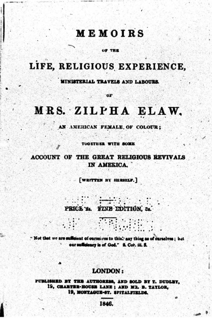 She wrote that she was freeborn in Pennsylvania, married Joseph Elaw around 1810, and they had a daughter Rebecca. Her husband died in 1823. From 1827 to 1840 she was an itinerant Christian preacher, travelling widely including in the slavery states. Elaw suffered from bouts of ill health that confined her to bed for many weeks, and she also had visions. Despite most Christian leaders thinking that female preachers were inappropriate, Zilpha Elaw continued in this activity in America until 1840 when she sailed for England.
