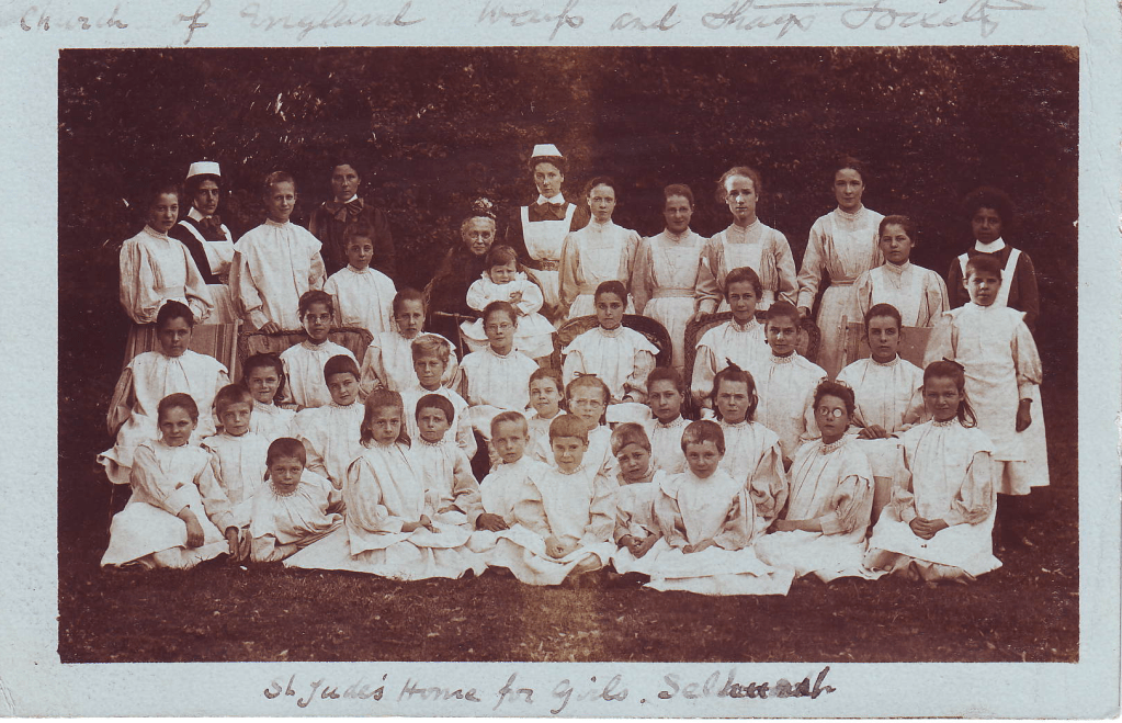 Many charitable people established orphanages and residential homes, some of which were absorbed by larger and better-funded groups. The Church of England’s Children’s Society was called Our Waifs and Strays for many years. Between 1881 and 1918 it cared for 22,500 children and operated in over 170 premises. It retains a policy of anonymity, for reasons explained on its website http://www.hiddenlives.org.uk. The chance survival of a postcard mailed in 1906 shows the girls of the St Jude’s Home for Girls in Selhurst near Croydon. One of the teenaged girls is black. St Jude’s opened in 1862 and operated from two substantial houses at 49 Dagnall Park near Selhurst station into 1939. The Children’s Society policy of anonymity prevents access to her name and other details, although the British census of 1901 may throw some light, for the home had 35 girls and the seniors such as the black girl of 1906 tended to them as well as worked in local homes as trainee domestic servants. The monthly Our Waifs and Strays magazine published the photograph in the issue of November 1906 (p 314) and is available on line but all inmates names have been obliterated. And the black girl was removed from the group photograph.